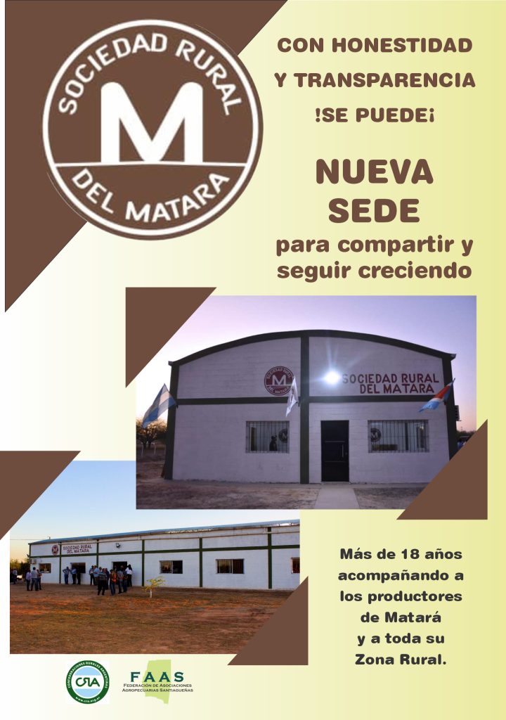 En esta oportunidad, con nuestros más de 150 productores asociados, todas las Comisiones directivas que han pasado, la actual y junto a toda está gran comunidad tenemos el honor de brindarle a Matará y a toda su zona Rural, un espacio que permita reuniones familiares e institucionales. Y continuar capacitando a todos los socios con más comodidad, siendo este un verdadero lugar de encuentro.