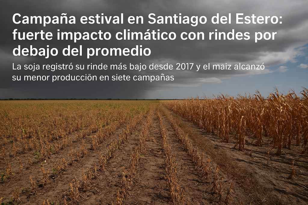 La campaña estival 2024/25 en la provincia de Santiago del Estero avanza con resultados que no logran cumplir con las expectativas iniciales. Según el Informe Agronómico N° 782 elaborado por el Departamento de Información Agronómica de la Bolsa de Cereales de Córdoba (BCCBA), las condiciones climáticas extremas, especialmente las altas temperaturas y las lluvias irregulares, impactaron severamente en los rendimientos de los principales cultivos.