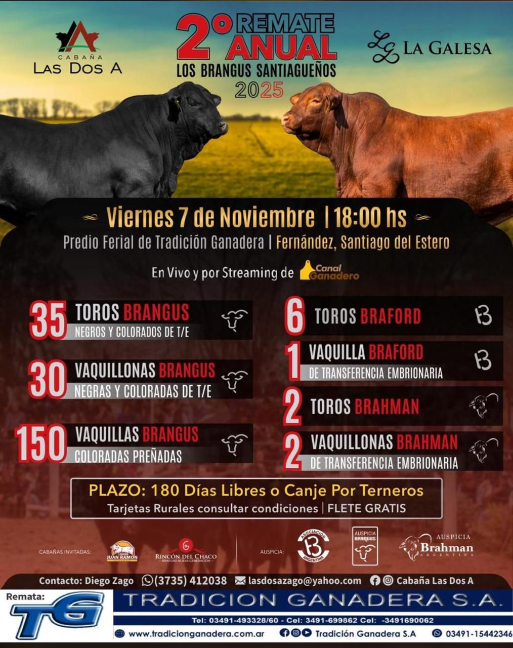La ganadería santiagueña sigue consolidando espacios propios en el calendario nacional. El próximo viernes 7 de noviembre, a las 18 hs, se realizará el 2° Remate Anual Los Brangus Santiagueños 2025, en el predio de Tradición Ganadera S.A., ubicado en Fernández, Santiago del Estero. El evento será transmitido en vivo por Canal Rural.