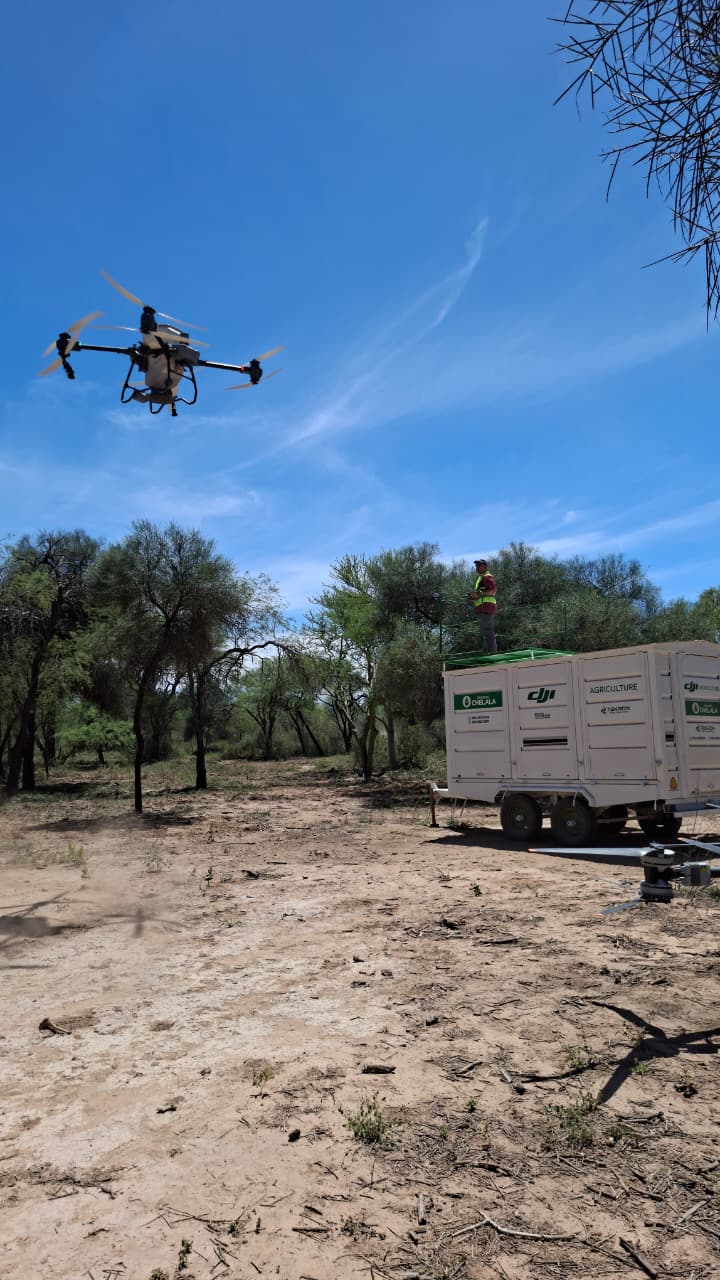 En el establecimiento “La Lonja”, ubicado en Weisburd, el corazón del monte santiagueño, se realizó una jornada a campo que reunió a productores, técnicos y referentes agropecuarios para presenciar una demostración de siembra de Gatton Panic mediante el Dron Agrícola DJI Agras T100, aplicada sobre monte natural y monte rolado selectivamente”.