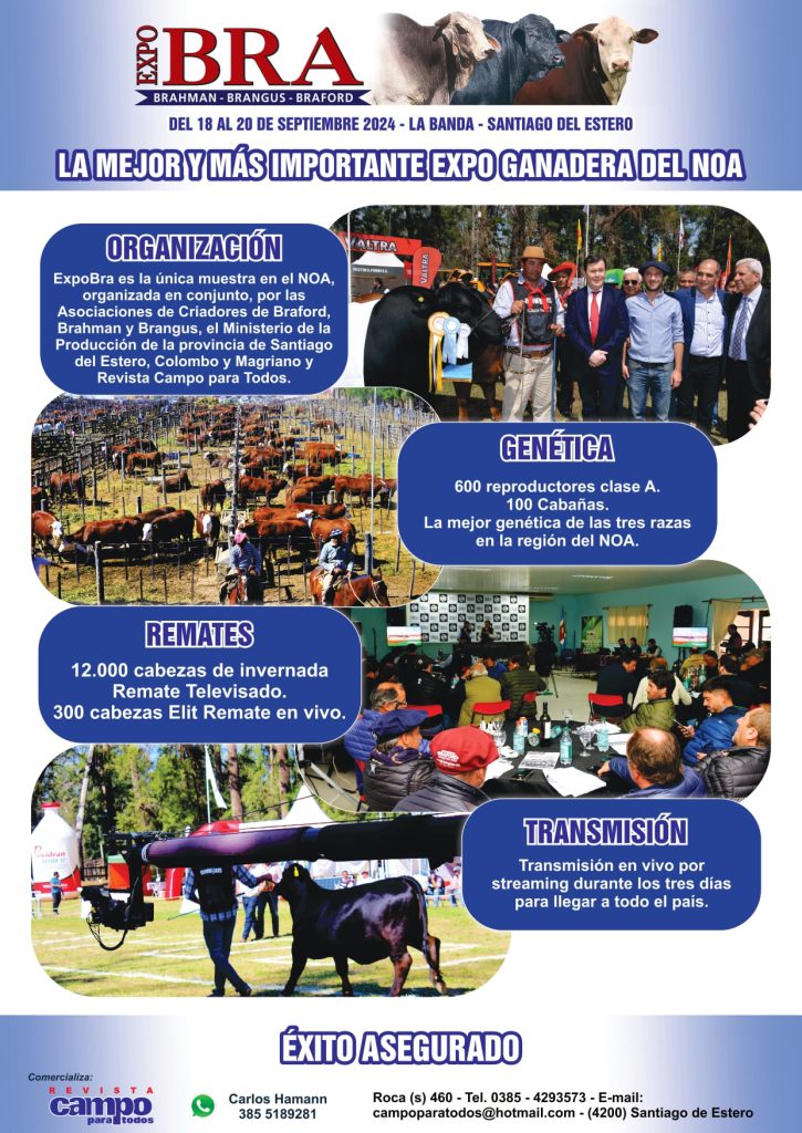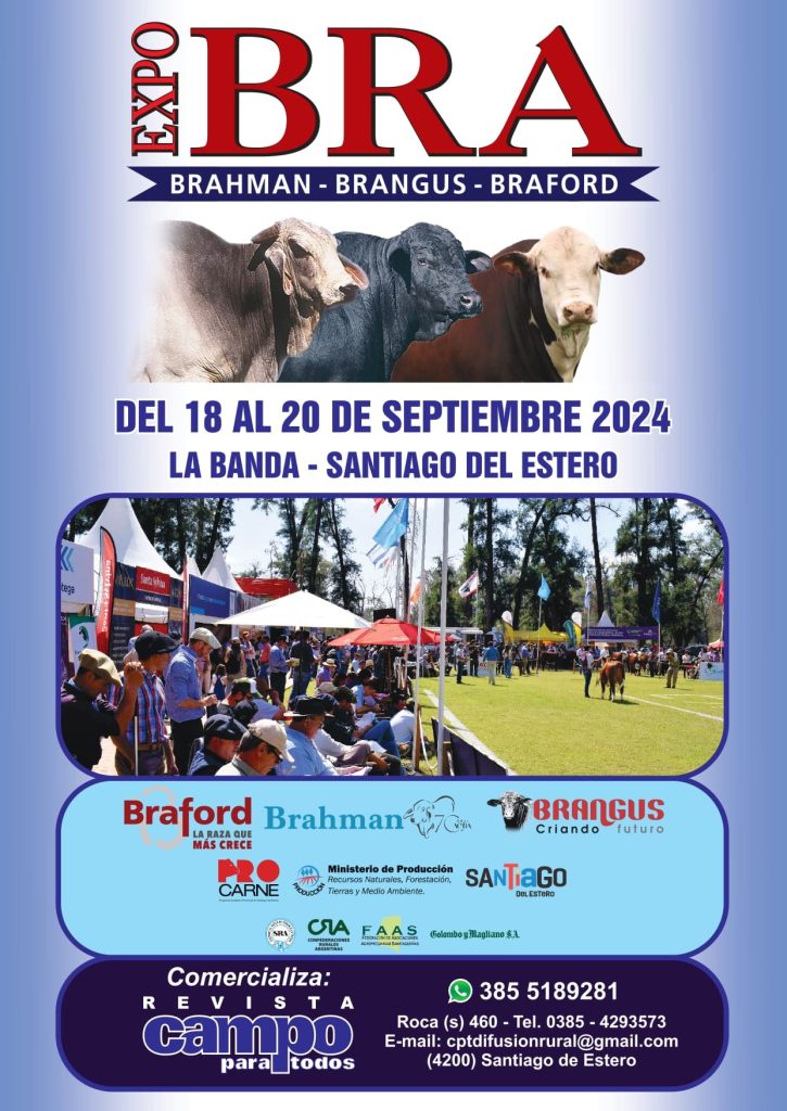 ExpoBra es la única muestra en el NOA, organizada en conjunto, por las Asociaciones de Criadores de Braford, Brahman y Brangus, que se realiza en el mes de Septiembre en las instalaciones del Predio Ferial Vivero San Carlos en la provincia de Santiago del Estero.